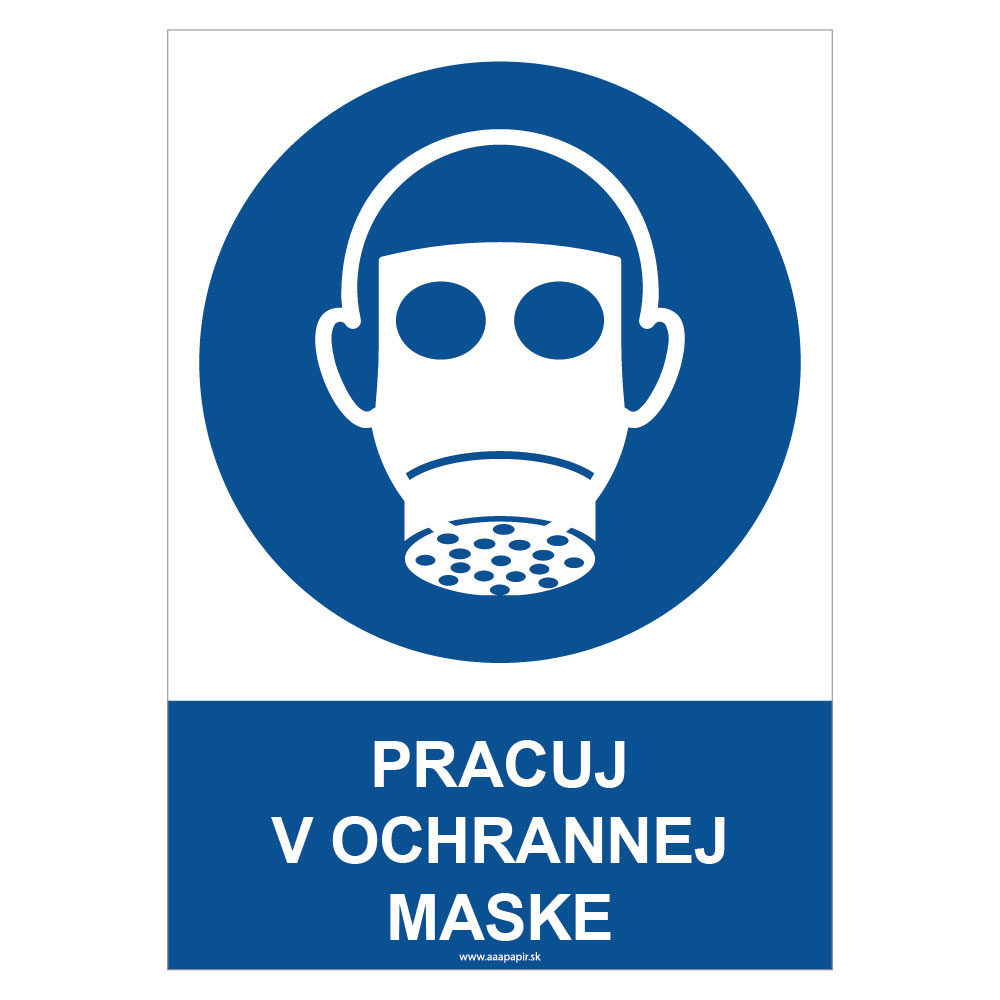 Pracuj v ochrannej maske - bezpečnostná tabuľka s dierkami, plast 2 mm - A4