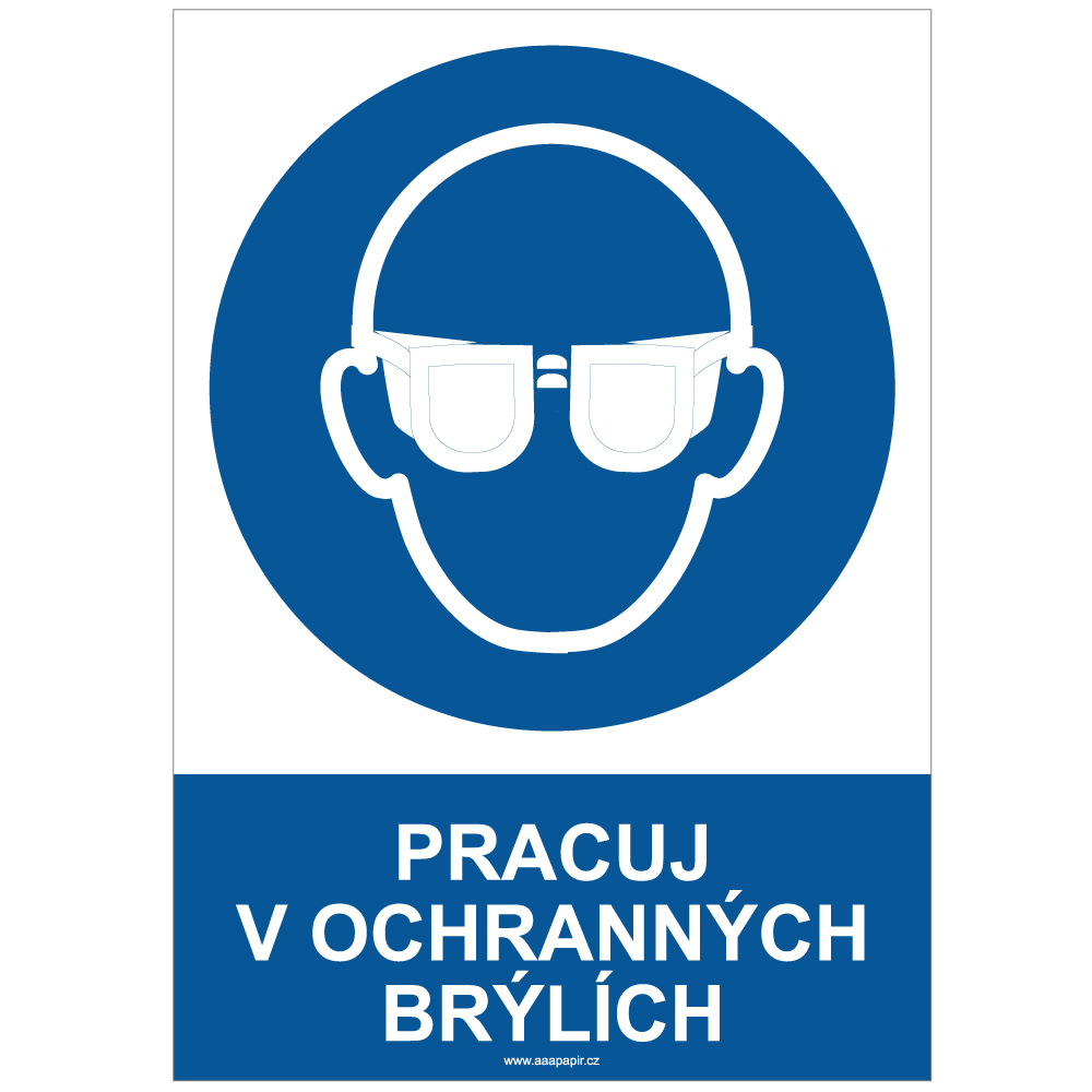 PRACUJ V OCHRANNÝCH BRÝLÍCH - bezpečnostní tabulka, plast A5 0,5 mm Bezpečnostní tabulka - plast, tloušťka 0,5 mm