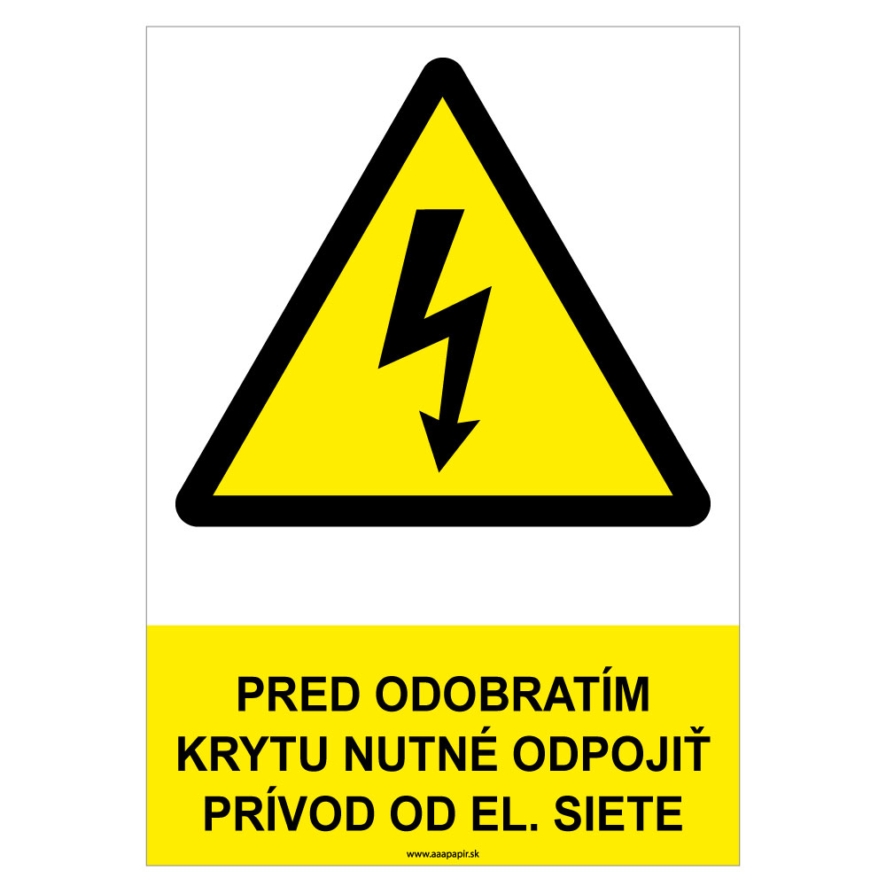 Pred odobratím krytu nutné odpojiť prívod od el. siete-bezpečnostná tabuľka, plast A4, 0,5mm