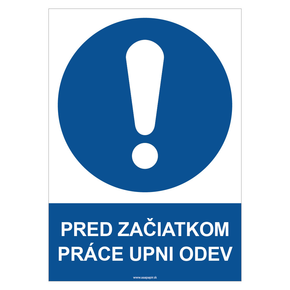 Pred začiatkom práce si pozapínaj odev - bezpečnostná tabuľka, plast 2 mm - A4