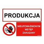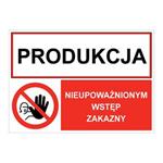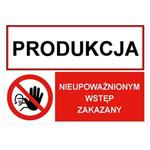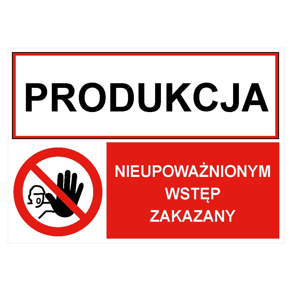 PRODUKCJA - NIEUPOWAŻNIONYM WSTĘP ZAKAZNY, ZNAK ŁĄCZONY, naklejka 297 x 210 mm