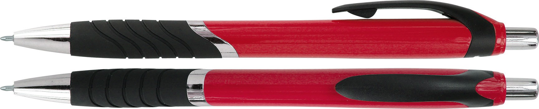 Plastové kuličkové pero s kovovými doplňky.