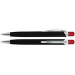 Plastové kuličkové pero s kovovými doplňky. Propiska plastová - Villain 9020 - černá/červená Minimální počet k objednání je 100 ks. Propisky Vám na přání potiskneme. Potiskujeme barvami s certifikací OEKO-TEX® potvrzující neškodnost inkoustů při styk
