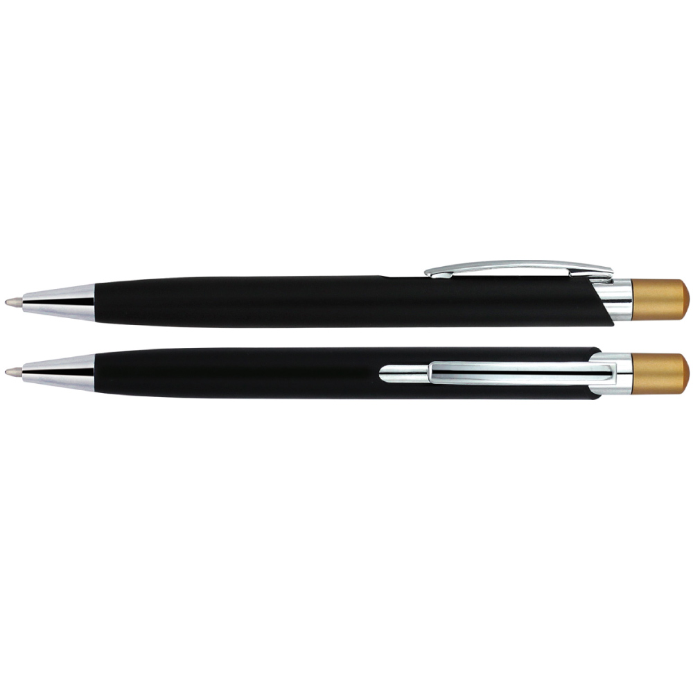 Plastové kuličkové pero s kovovými doplňky. Propiska plastová - Villain 9090 - černá/černá Minimální počet k objednání je 100 ks. Propisky Vám na přání potiskneme. Potiskujeme barvami s certifikací OEKO-TEX® potvrzující neškodnost inkoustů při styku