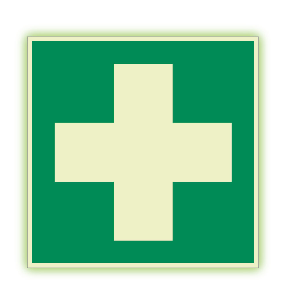 První pomoc - ošetřovna - lékarnička - fotoluminiscenční tabulka, plast 1 mm 300x300 mm