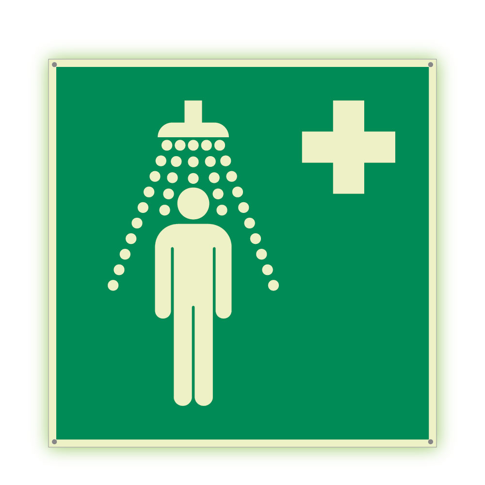 Prysznic bezpieczeństwa - fotoluminescencyjny znak, płyta PVC 2 mm 300x300 mm