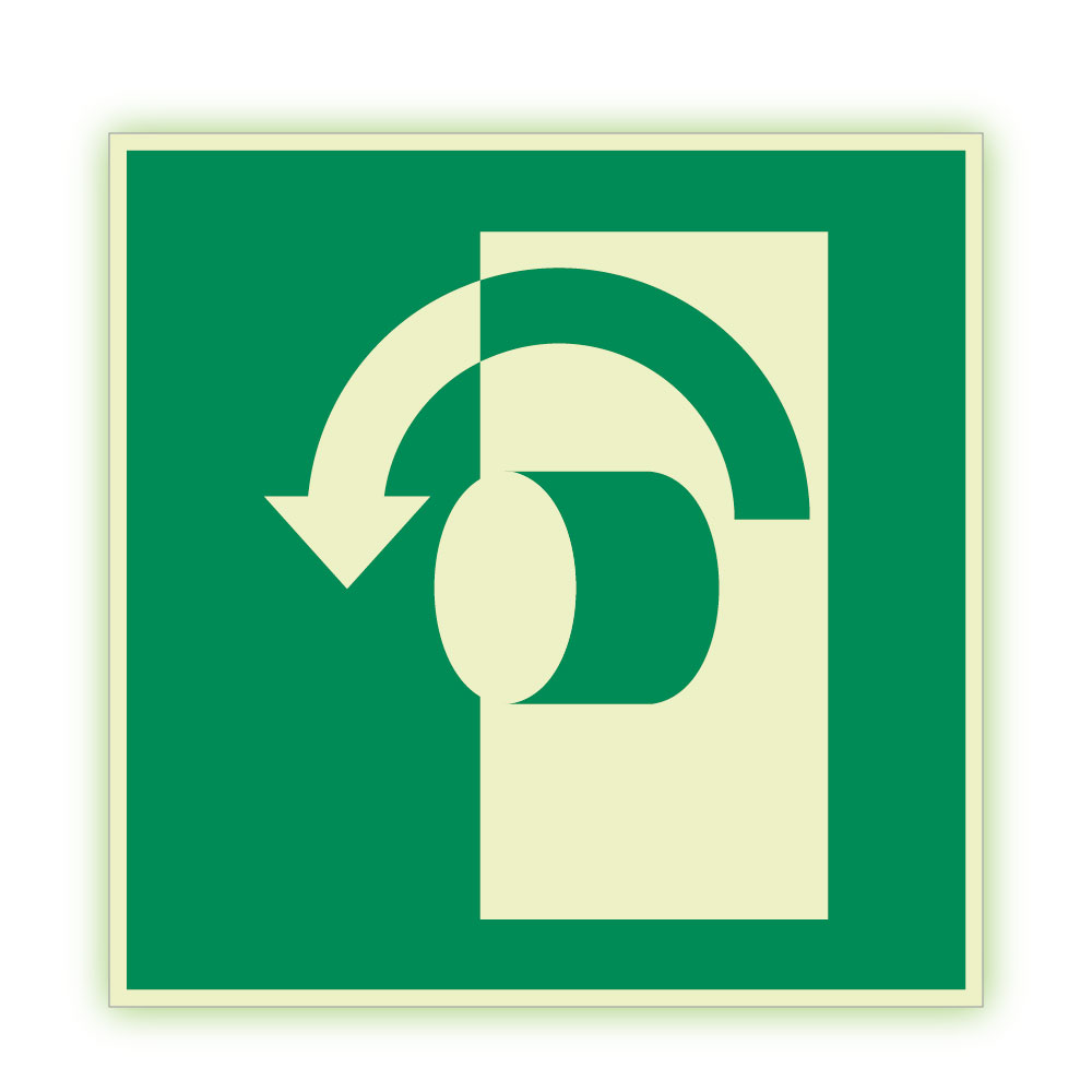 Przekręcić w lewo aby otworzyć - fotoluminescencyjny znak, naklejka 300x300 mm
