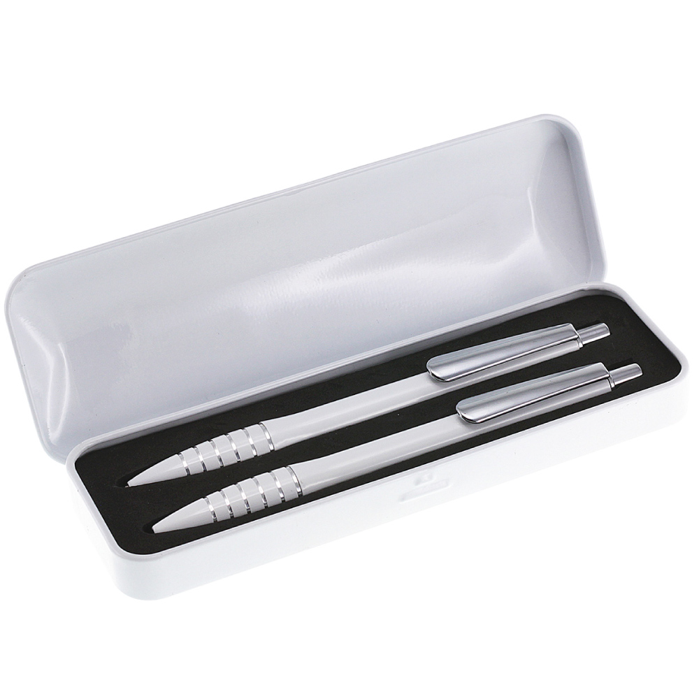 Sada hliníkové guľôčkové pero a mikroceruzka Quark - biela