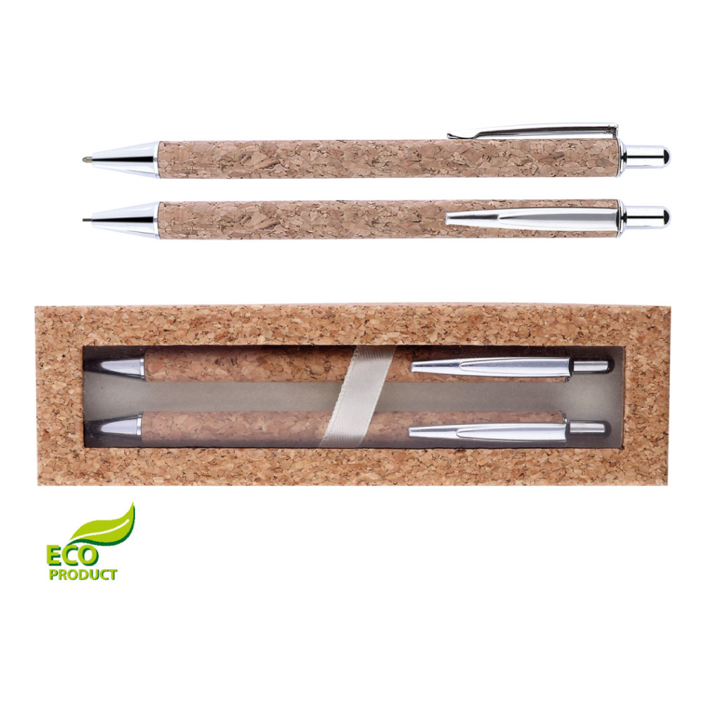Korková sada - kuličkové pero a mechanická tužka v papírové krabičce korkového designu