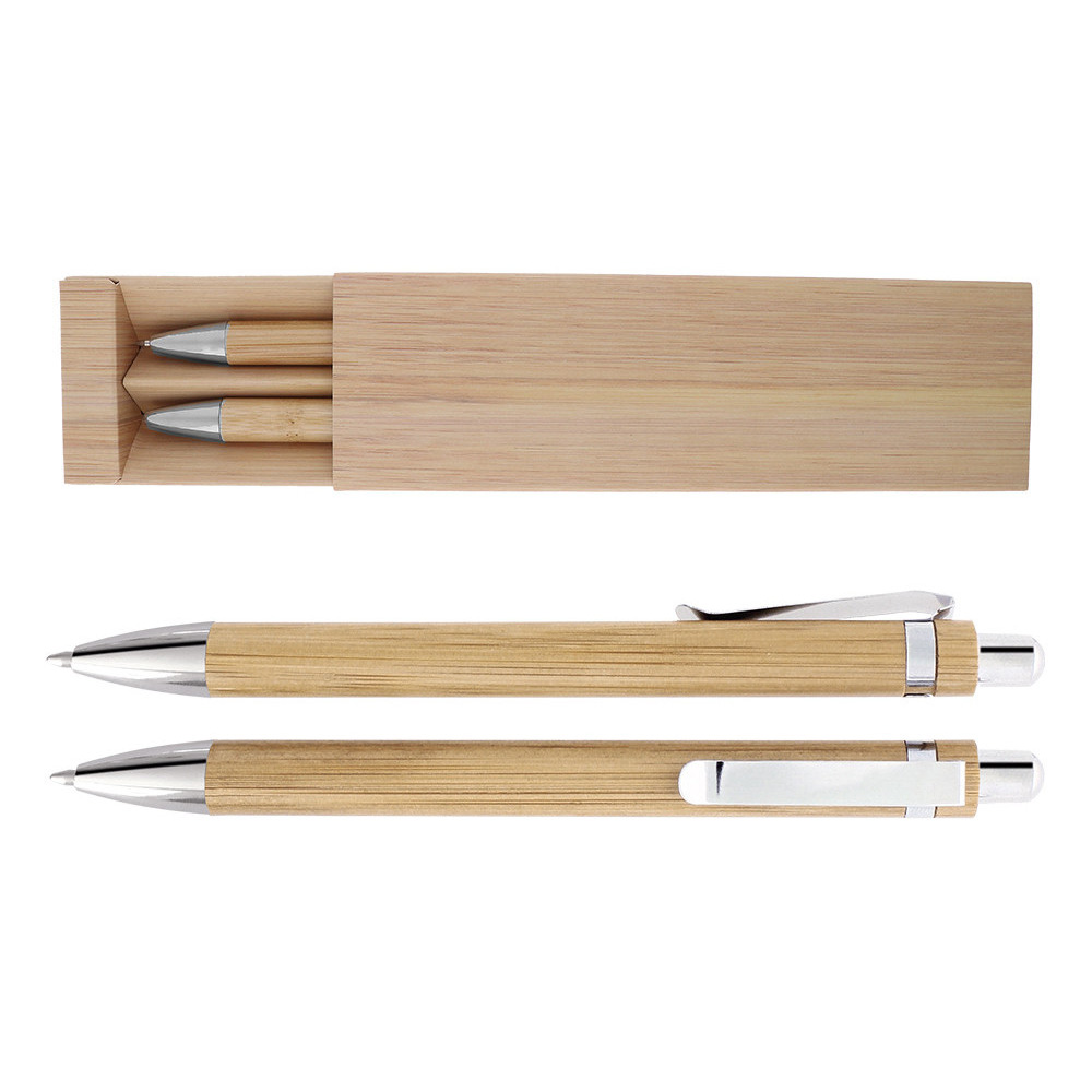 Přírodní sada bambusové kuličkové pero a mikrotužka v papírovém boxu se vzorem dýhovaného bambusu