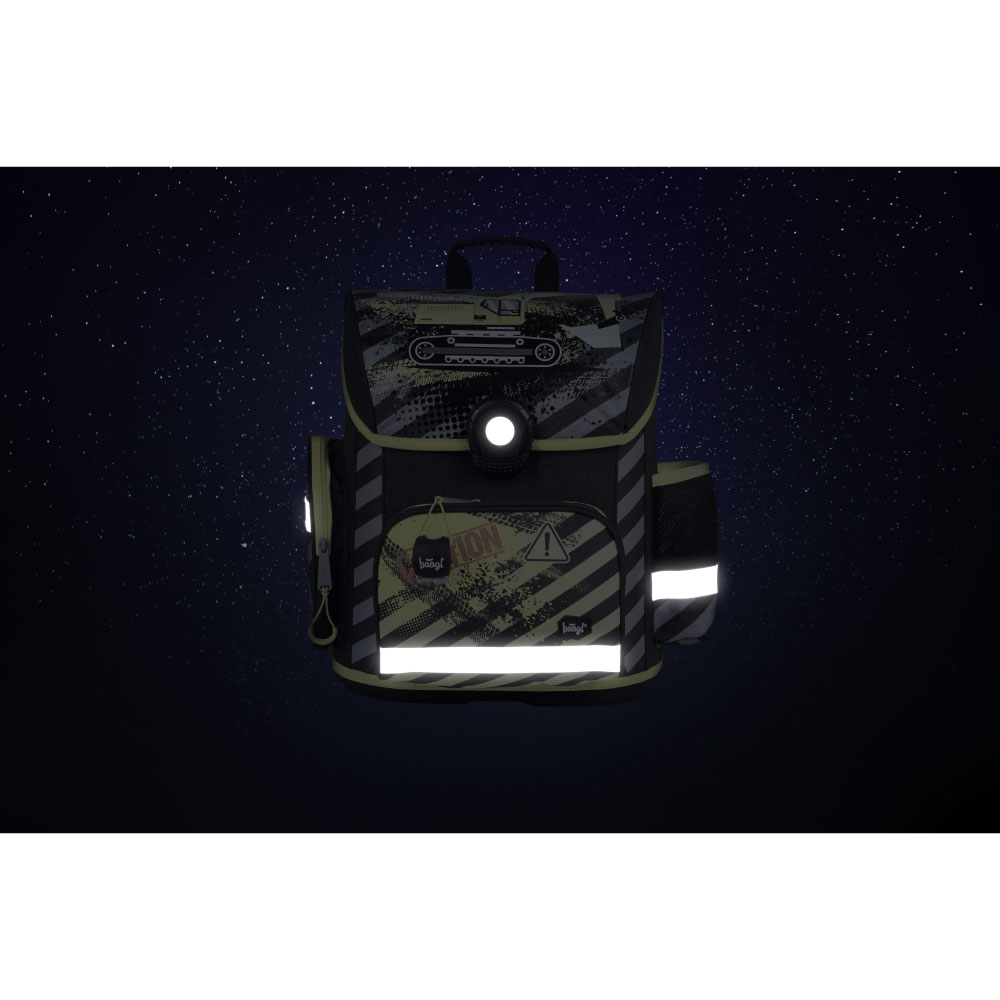 • Aktovka je vybavená elastickym svietidlom, ktoré zaistí lepšiu viditeľnosť a bezpečnosť školáka. Vďaka jednoduchému úchytu možno svetlo zavesiť kamkoľvek.