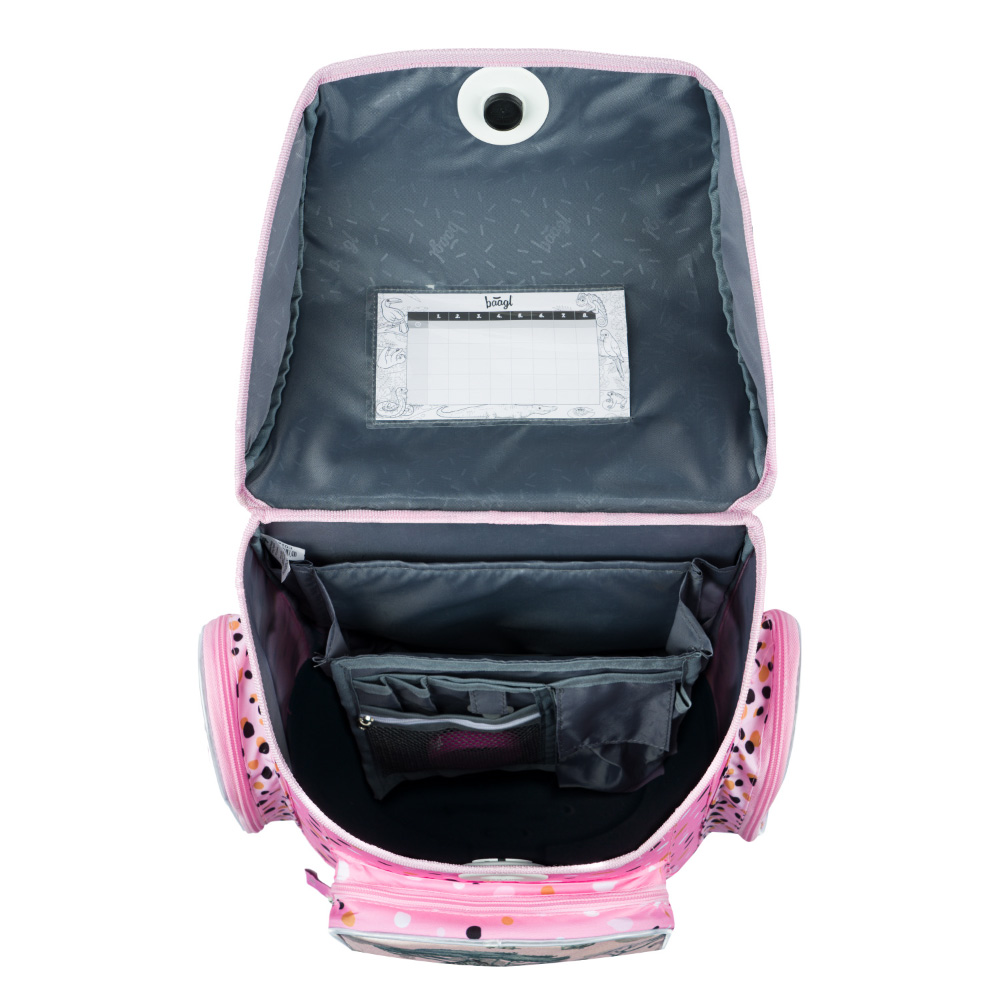 • Vovnútri aktovky je priehľadná kapsa s rozvrhom a vnútorný organizér umožňujúci rovnomerné rozloženie hmotnosti.