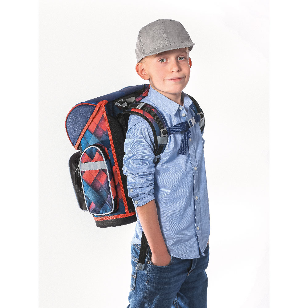 • Vovnútri aktovky je priehľadná kapsa s rozvrhom a vnútorný organizér umožňujúci rovnomerné rozloženie hmotnosti.