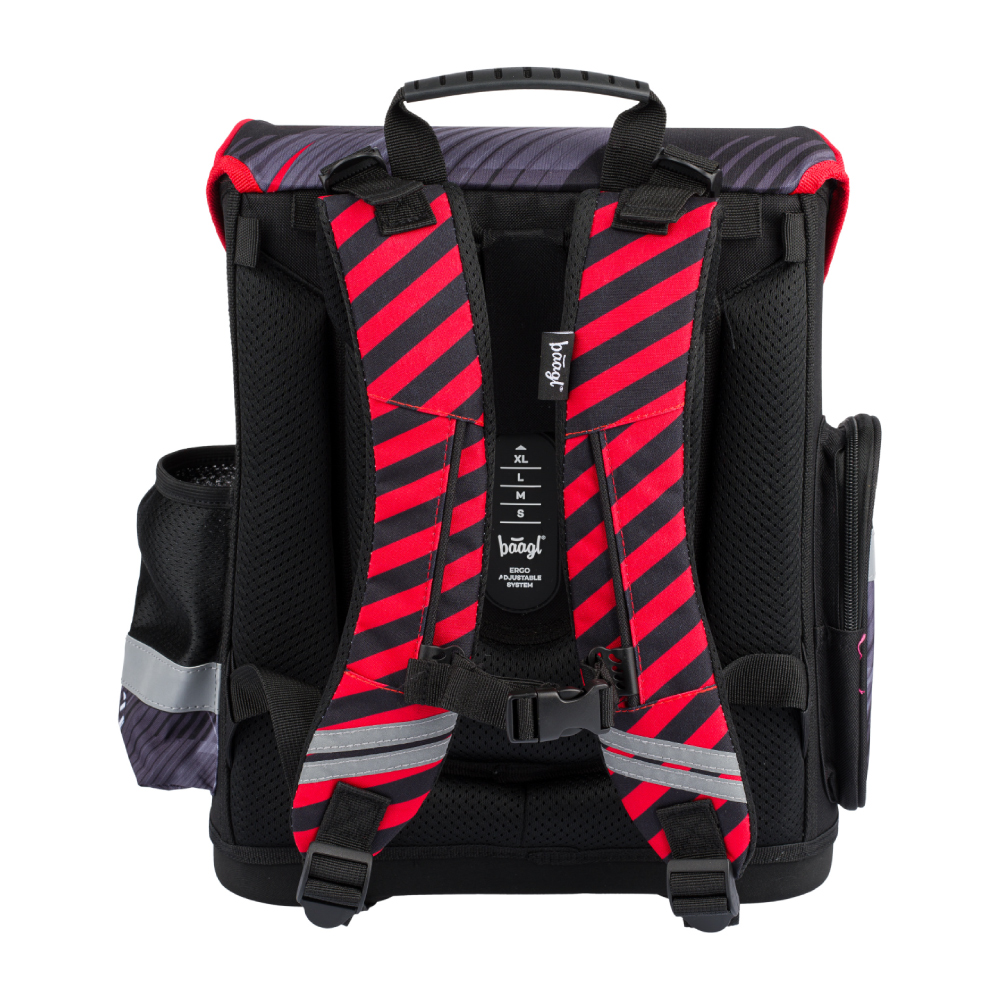 • Školská aktovka s vystuženým telom, vnútorným organizérom a troma oddelenými kapsami a zapínaním na kvalitnú pracku.