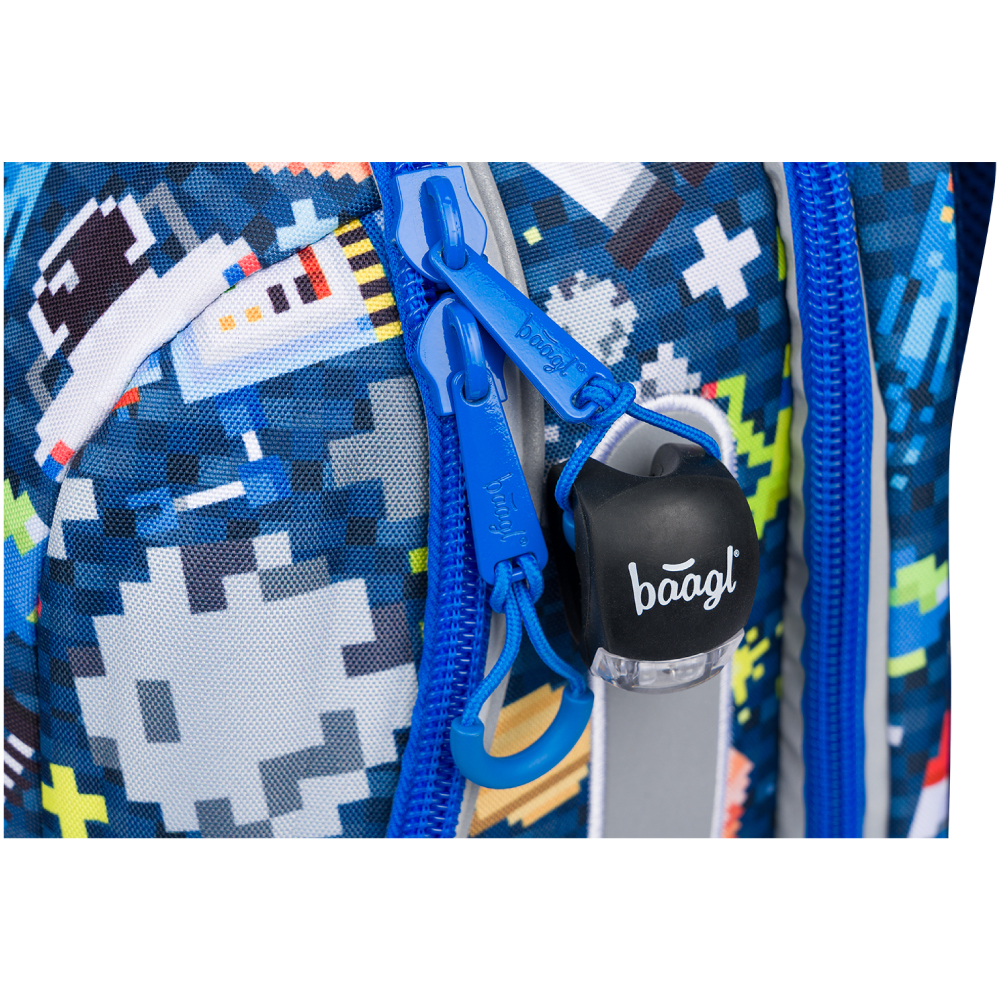 • Aktovka je vybavená elastickým svietidlom, ktoré zaistí lepšiu viditeľnosť a bezpečnosť školáka. Vďaka jednoduchej úchytke je možné svietidlo zavesiť kamkoľvek.
