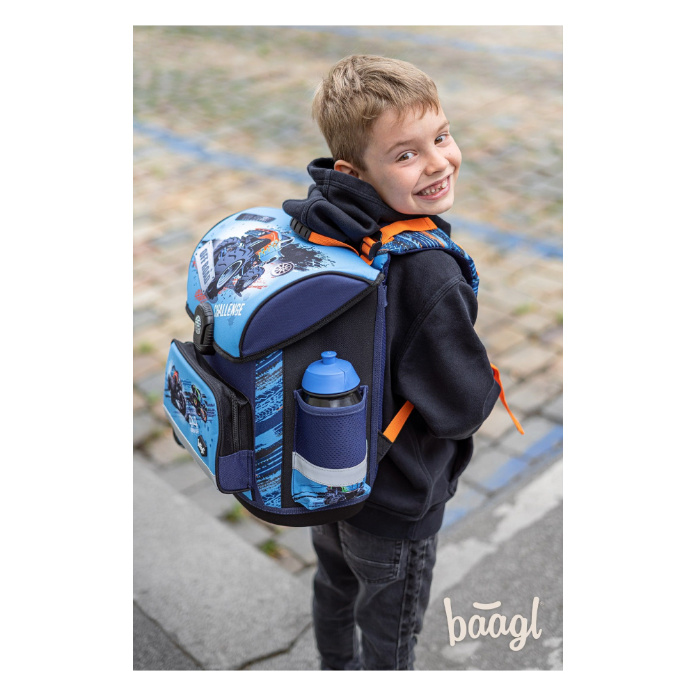 • Školská aktovka s vystuženým telom, vnútorným organizérom a troma oddelenými kapsami a zapínaním na kvalitnú pracku.