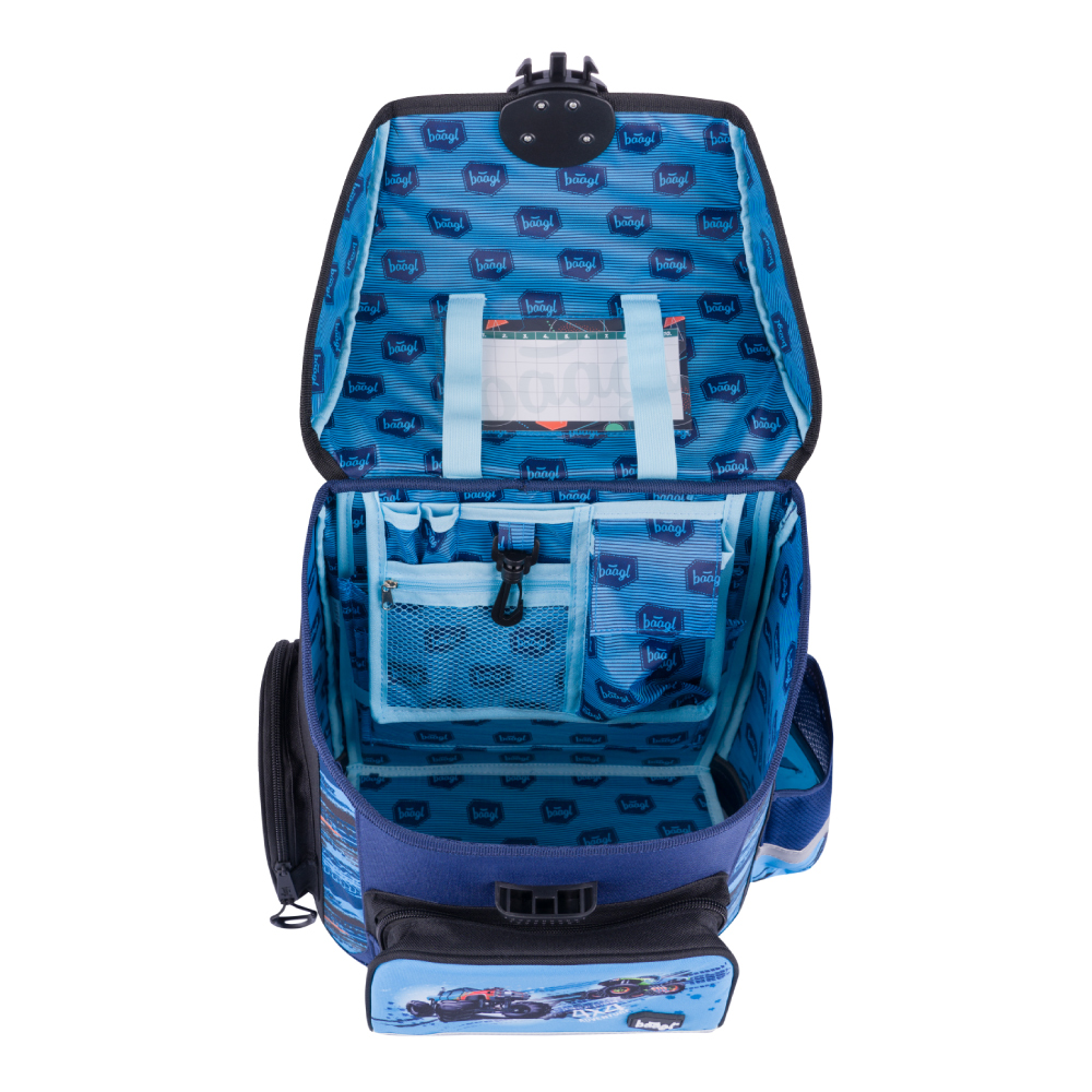 • Vovnútri aktovky je priehľadná kapsa s rozvrhom a vnútorný organizér umožňujúci rovnomerné rozloženie hmotnosti.