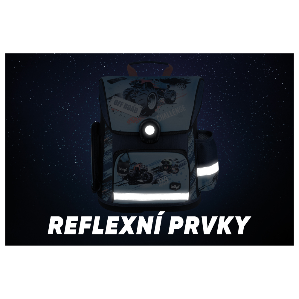 • Aktovka je vybavená elastickym svietidlom, ktoré zaistí lepšiu viditeľnosť a bezpečnosť školáka. Vďaka jednoduchému úchytu možno svetlo zavesiť kamkoľvek.