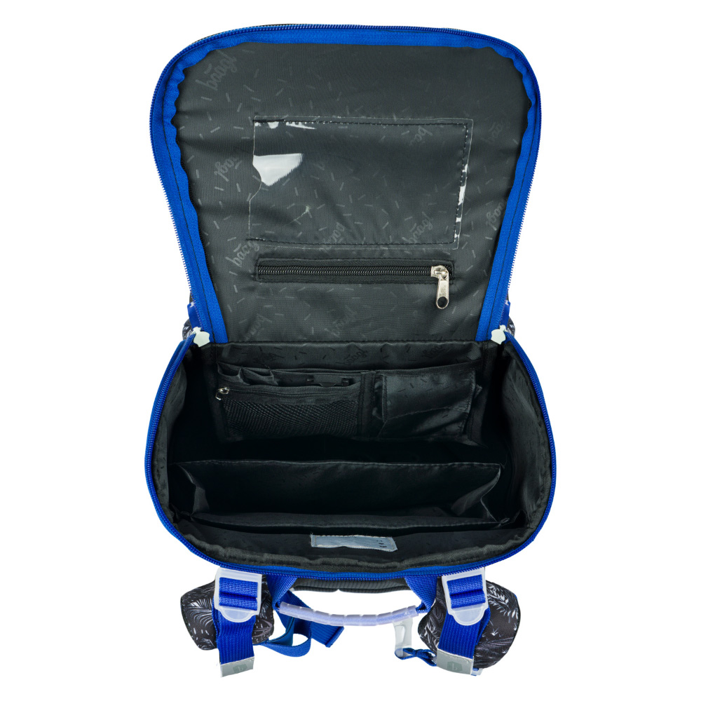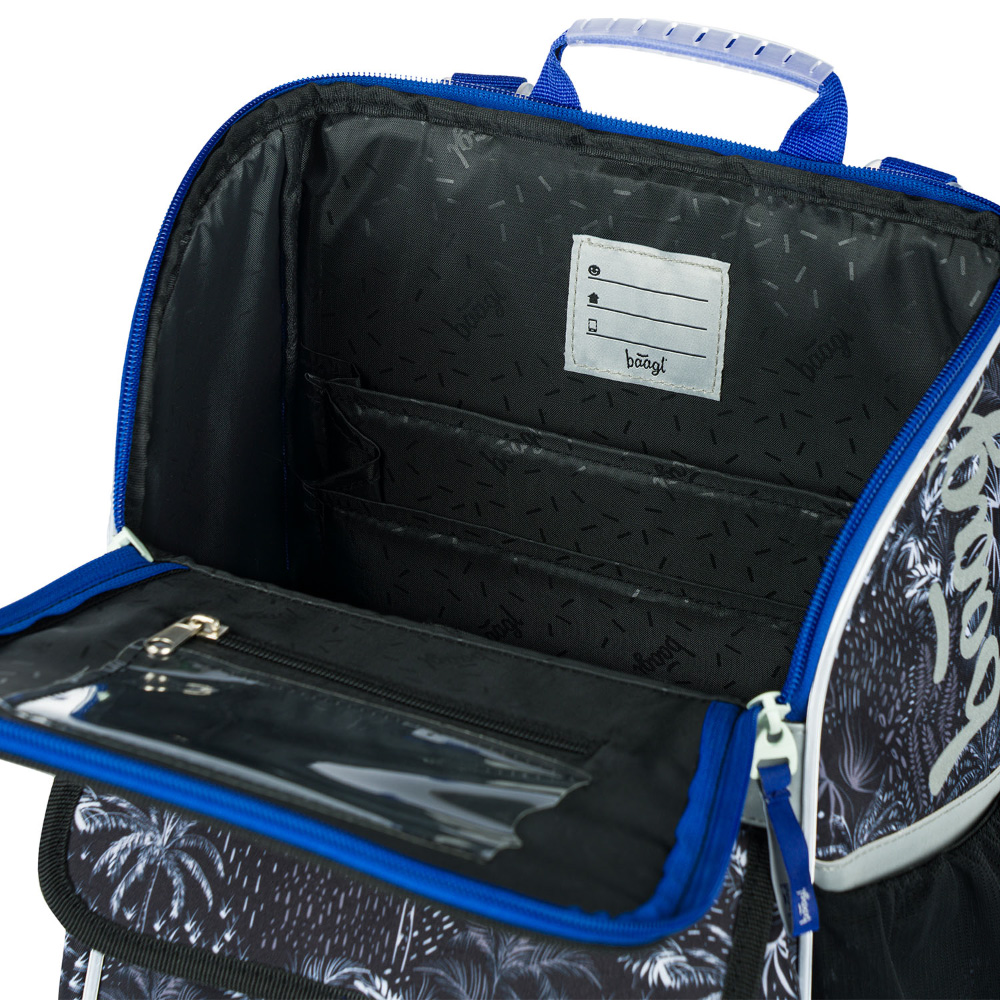 • Vnútri aktovky je priehľadná kapsa s rozvrhom a vnútorný organizér umožňujúci rovnomerné rozloženie hmotnosti doplnený gumičkou kvôli fixácii.