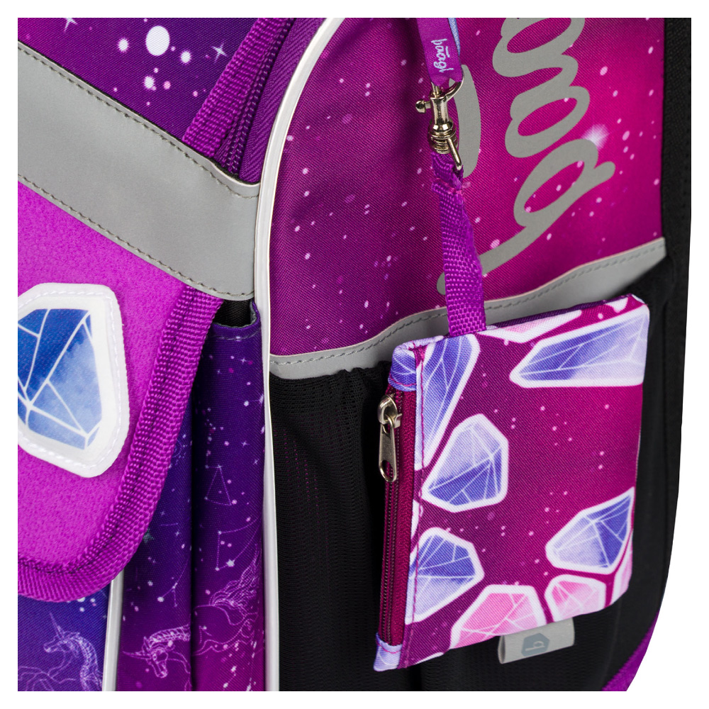 • Aktovka disponuje novým vyklápacím systémom otvárania na zips, vďaka ktorému sa školák ľahšie dostane k svojim pomôckam priamo z lavice a umožňuje lepší prehľad o obsahu školskej tašky.