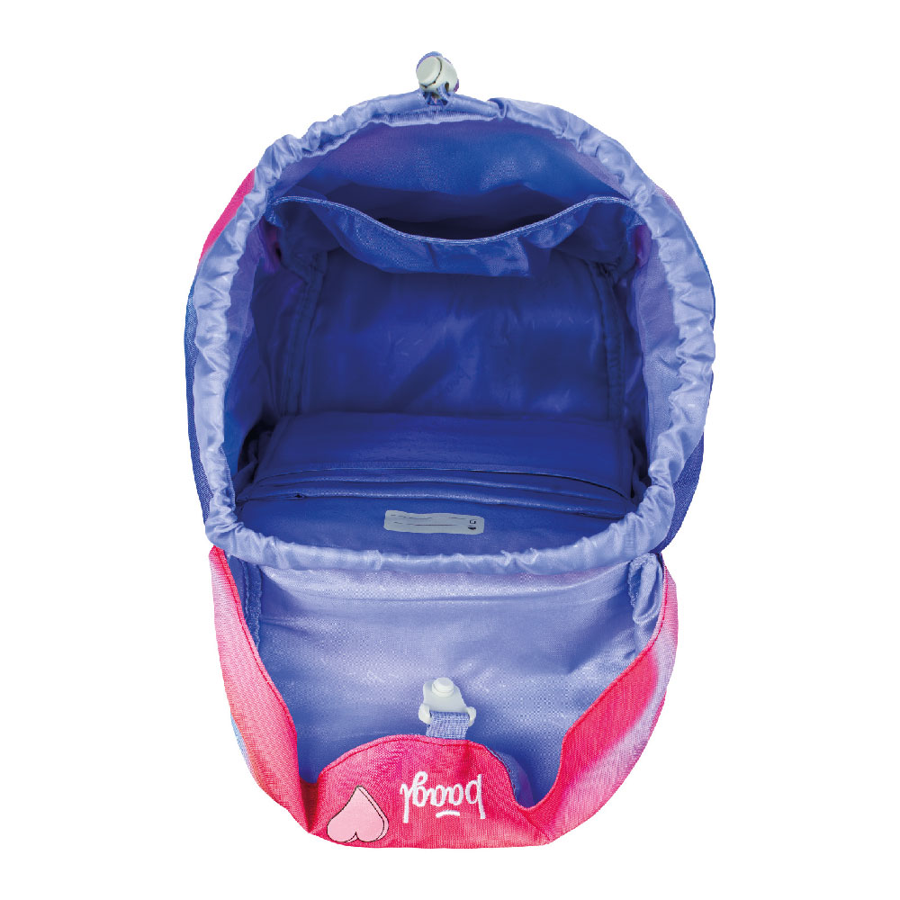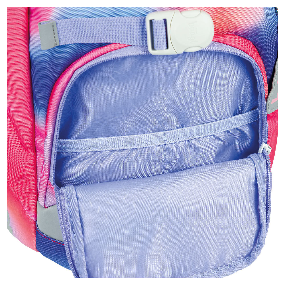• Vnútri aktovky je priehľadná kapsa s rozvrhom a vnútorný organizér umožňujúci rovnomerné rozloženie hmotnosti doplnený gumičkou kvôli fixácii.