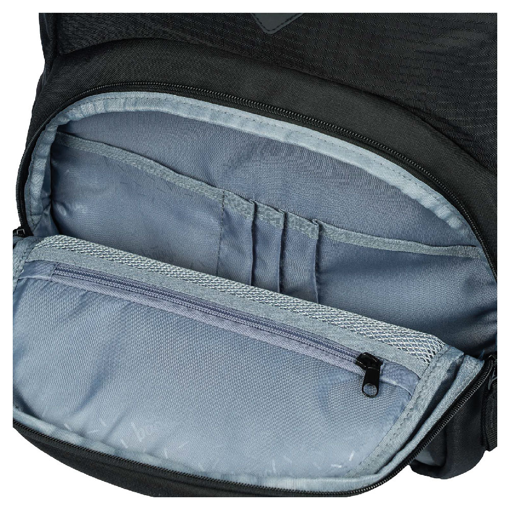 • Vnútri aktovky je priehľadná kapsa s rozvrhom a vnútorný organizér umožňujúci rovnomerné rozloženie hmotnosti doplnený gumičkou kvôli fixácii.