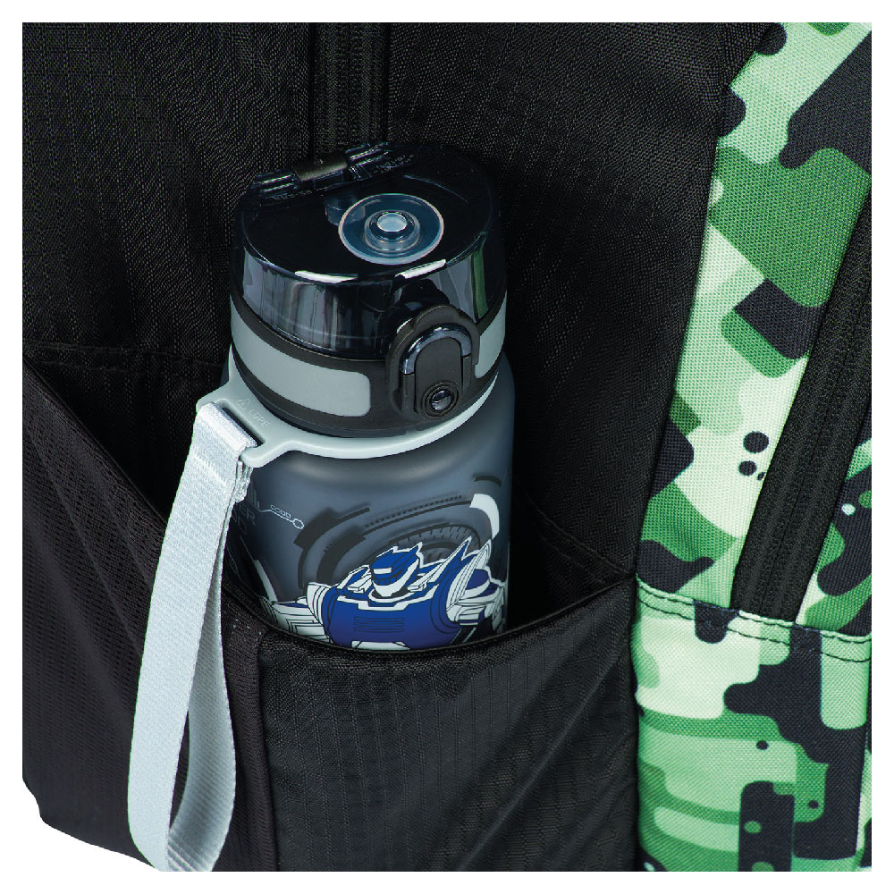 • Aktovka disponuje novým vyklápacím systémom otvárania na zips, vďaka ktorému sa školák ľahšie dostane k svojim pomôckam priamo z lavice a umožňuje lepší prehľad o obsahu školskej tašky.