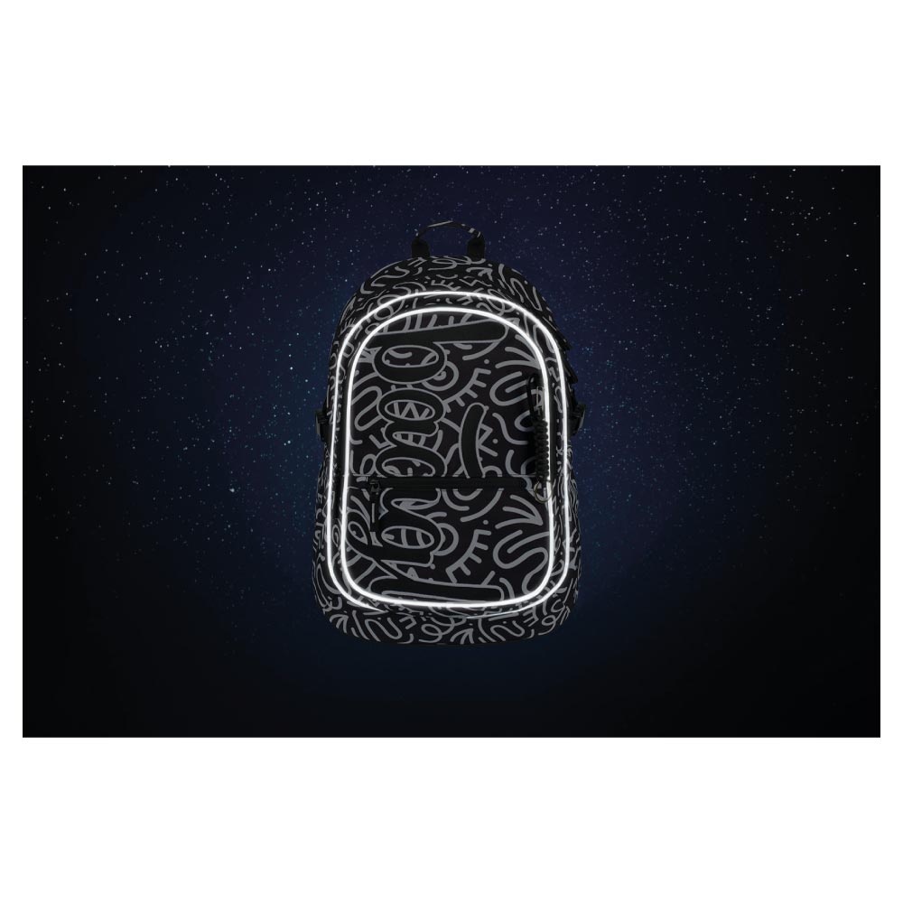 • Batoh je vybavený elastickým svietidlom, ktoré zaistí lepšiu viditeľnosť a bezpečnosť školáka. Vďaka jednoduchému úchytu je možné svietidlo zavesiť kamkoľvek.
