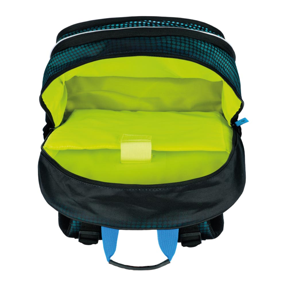 • Batoh je vybavený elastickým svietidlom, ktoré zaistí lepšiu viditeľnosť a bezpečnosť školáka. Vďaka jednoduchému úchytu je možné svietidlo zavesiť kamkoľvek.