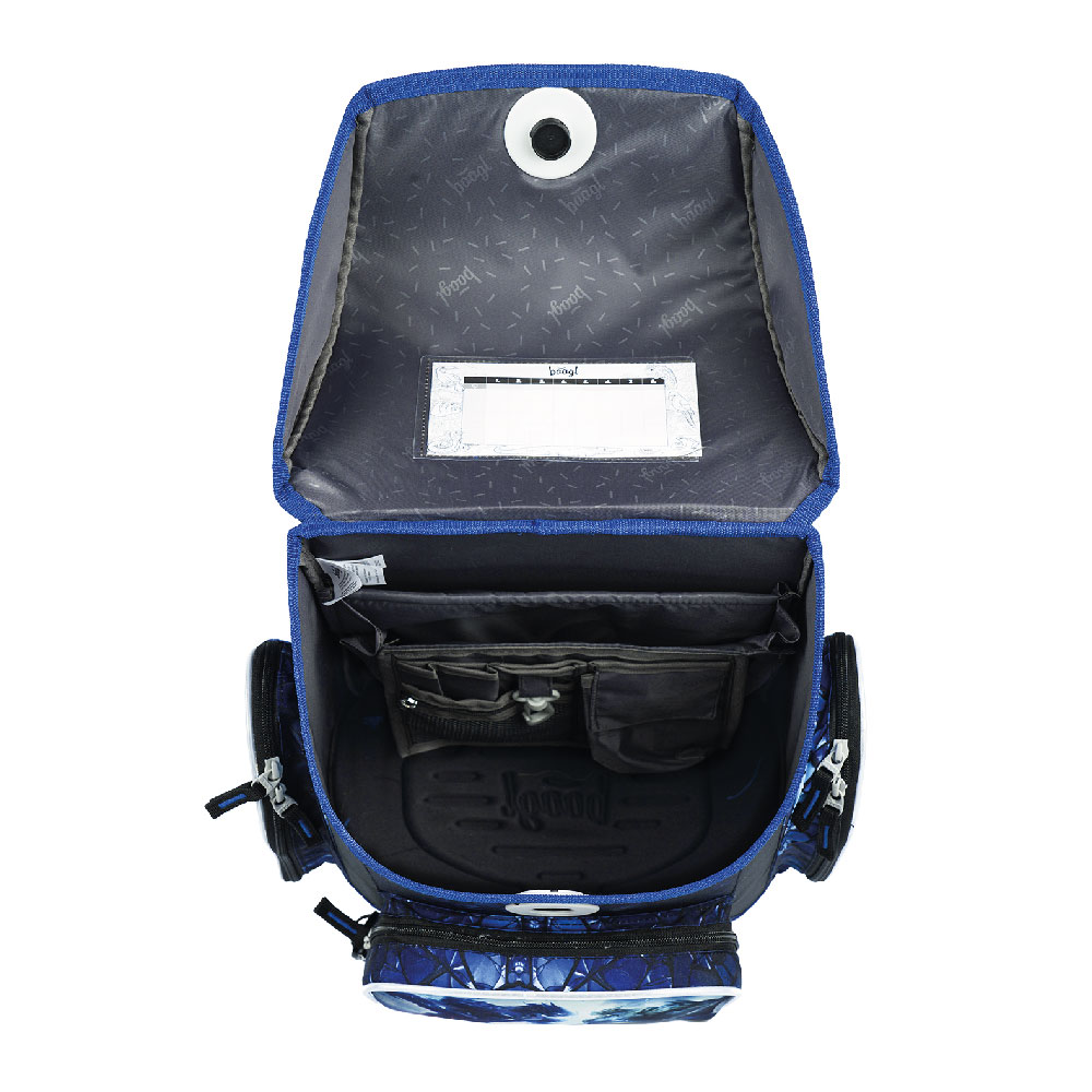 • Vnútri aktovky je priehľadné vrecko na rozvrh a vnútorný organizér umožňujúci rovnomerné rozloženie hmotnosti.