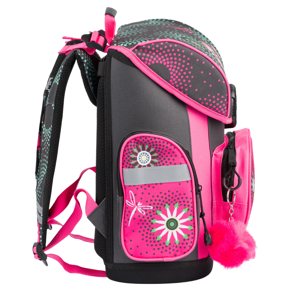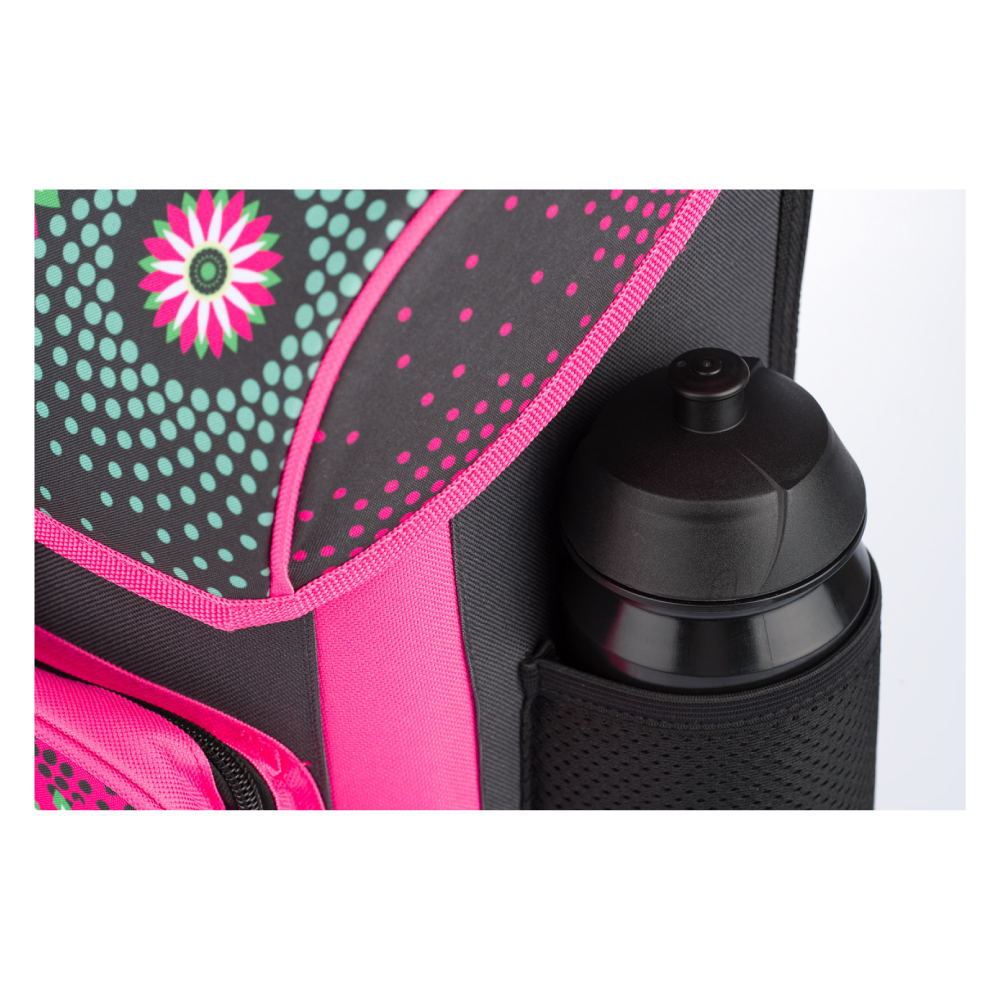 • Zelená školská aktovka s výraznými ružovými akcentmi kvetov. Táto školská aktovka je vhodná pre 1.-2. triedu ZŠ.