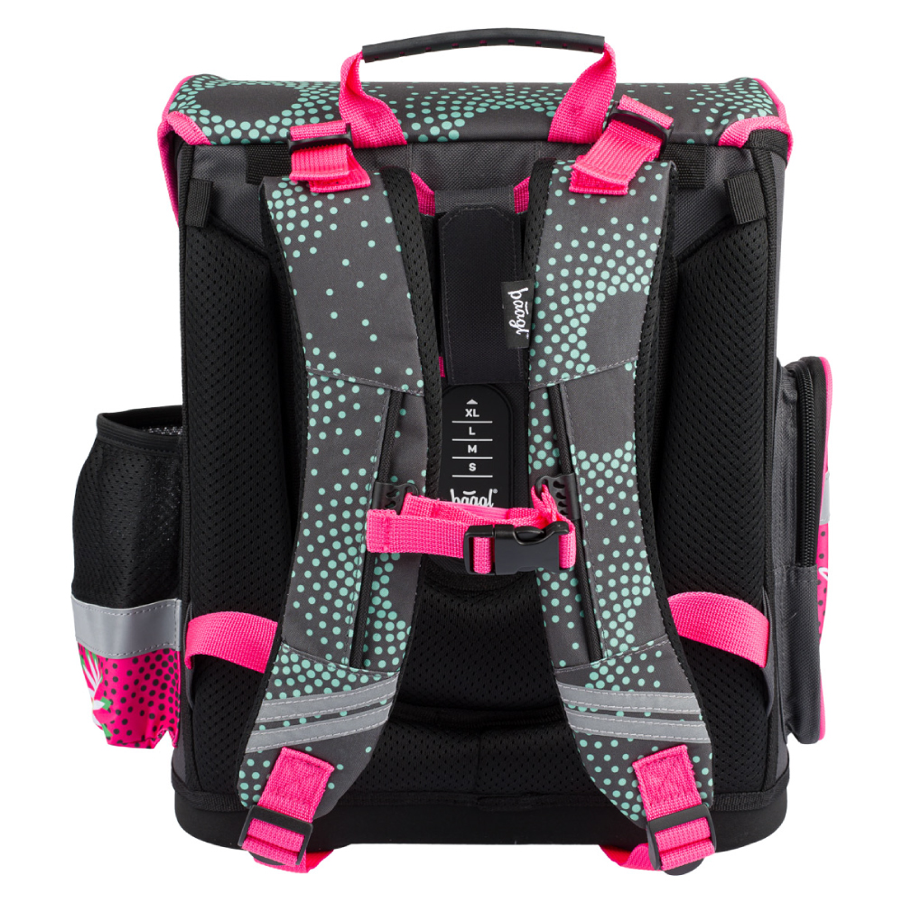 • Školská aktovka s vystuženým telom, vnútorným organizérom a tromi oddelenými vreckami a zapínaním na kvalitné pracku.