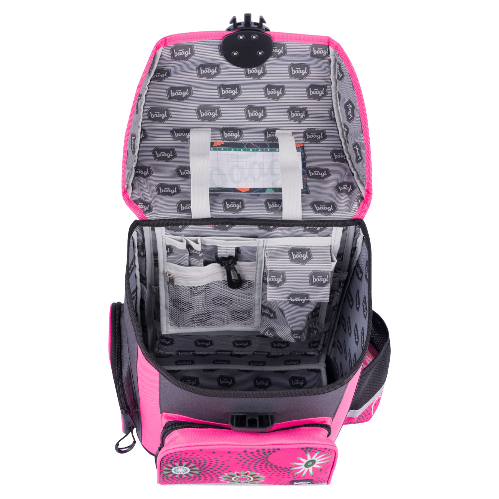 • Vo vnútri aktovky je priehľadné vrecko s rozvrhom a vnútorný organizér umožňujúce rovnomerné rozloženie hmotnosti.