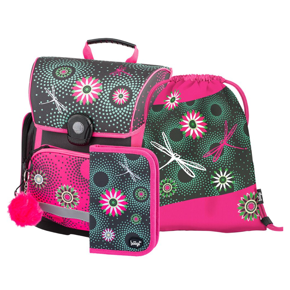 Školská sada Kvety - aktovka, peračník, vrecko
