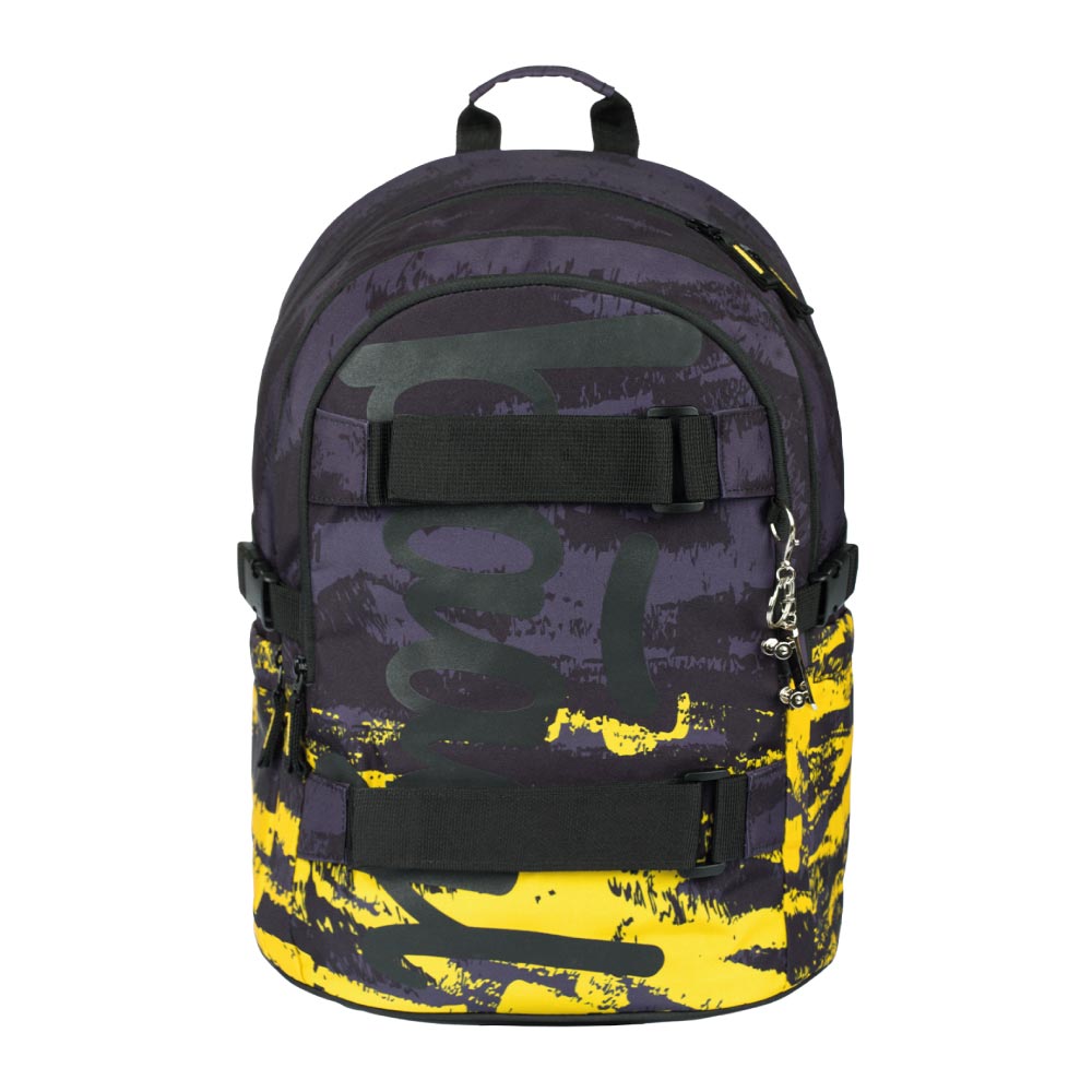 • Na prednej komore batohu sú umiestnené dva popruhy na uchytenie skateboardu.