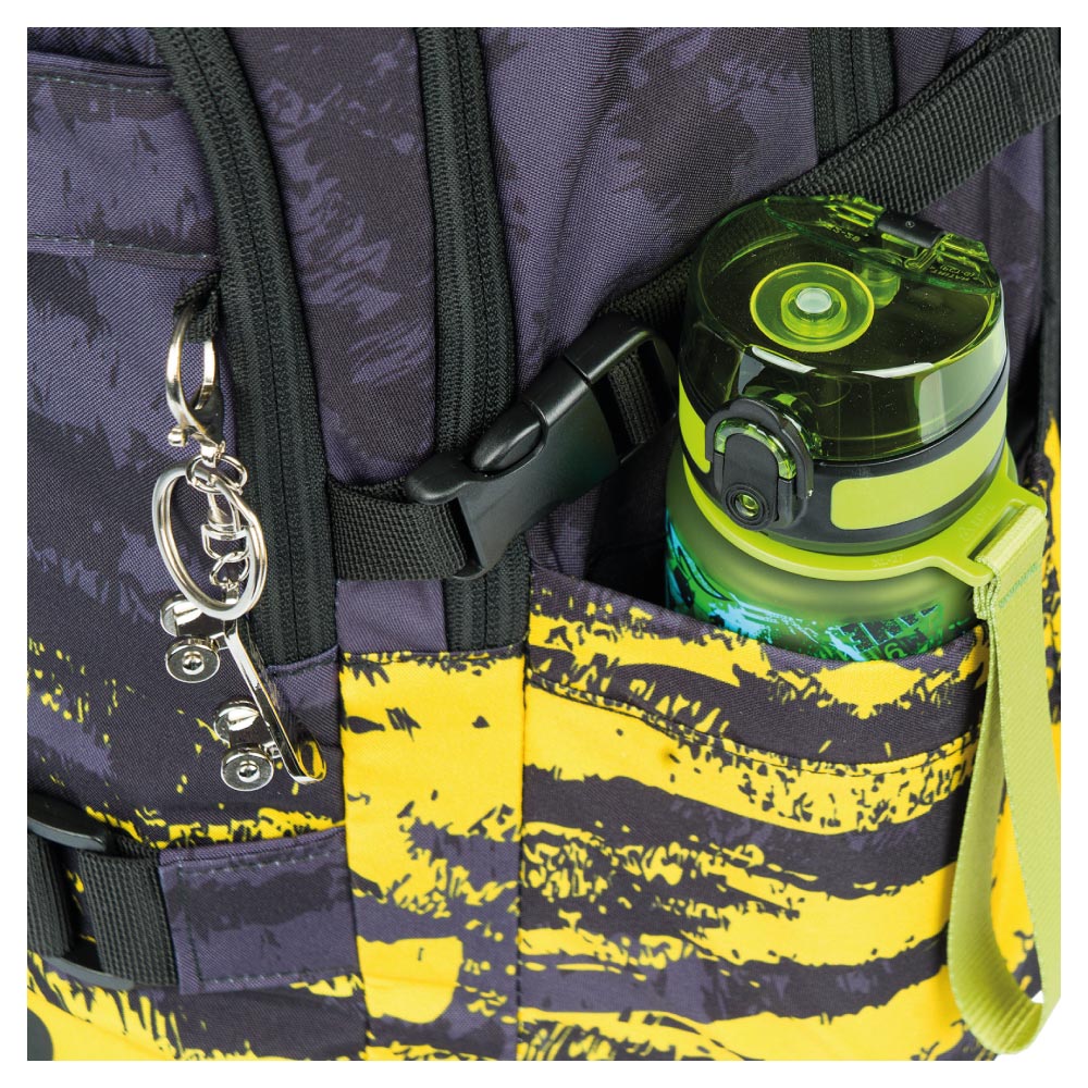 • Bočné vrecká z elastického materiálu, ktoré sú vhodné pre jednu z našich fliaš na pitie.