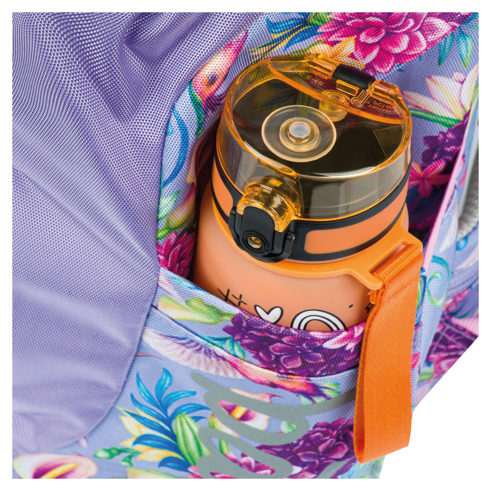 • Bočné vrecká z elastického materiálu, ktoré sú vhodné pre jednu z našich fliaš na pitie.