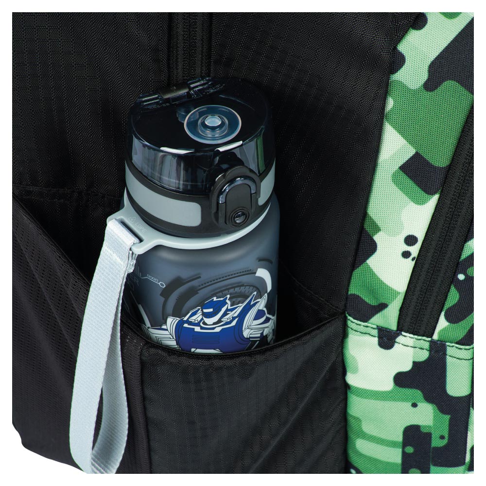 • Bočné vrecká z pevnej sieťoviny, ktoré sú vhodné pre jednu z našich fliaš na pitie.