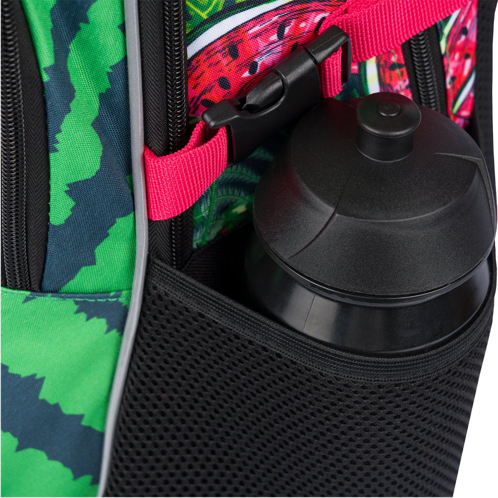• Bočné vrecká z pevnej sieťoviny, ktoré sú vhodné pre jednu z našich fliaš na pitie.
