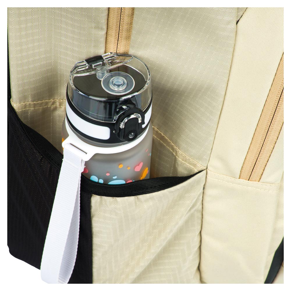 • Bočné vrecká z pevnej sieťoviny, ktoré sú vhodné pre jednu z našich fliaš na pitie.