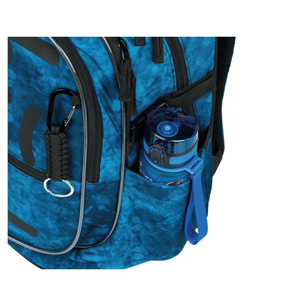 • Bočné vrecká z pevnej sieťoviny, ktoré sú vhodné pre jednu z našich fliaš na pitie.