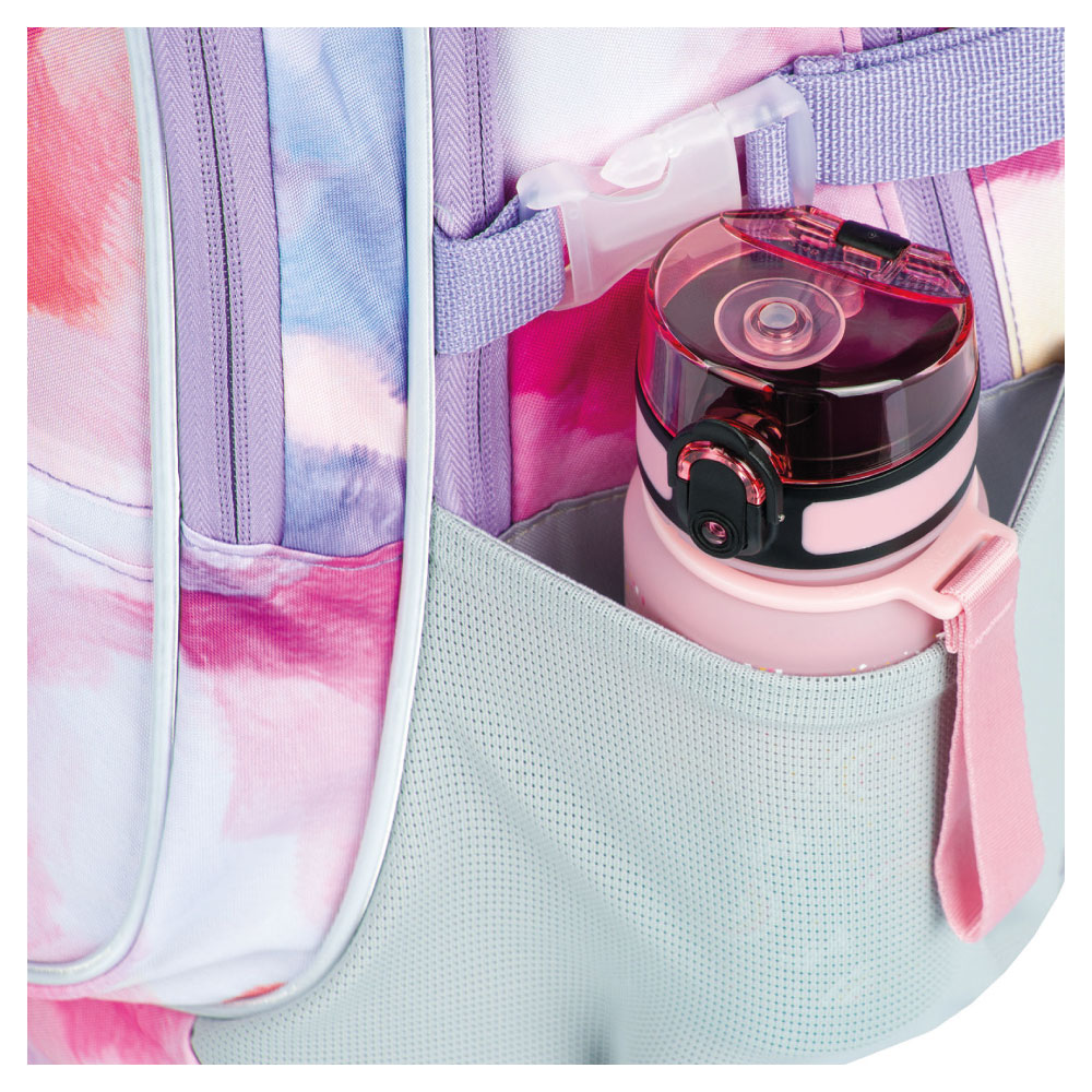 • Bočné vrecká z pevnej sieťoviny, ktoré sú vhodné pre jednu z našich fliaš na pitie.