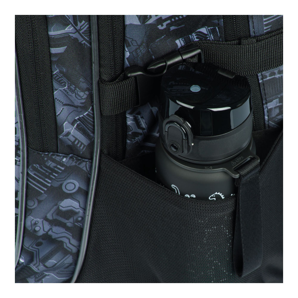 • Bočné vrecká z pevnej sieťoviny, ktoré sú vhodné pre jednu z našich fliaš na pitie.