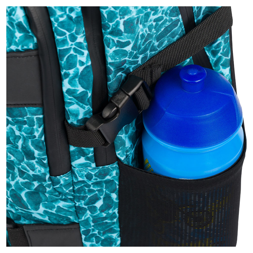 • Bočné vrecká z pevnej sieťoviny, ktoré sú vhodné pre jednu z našich fliaš na pitie.