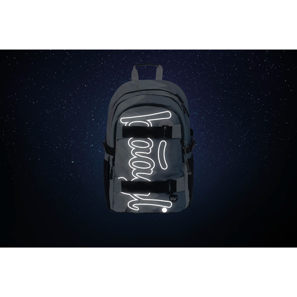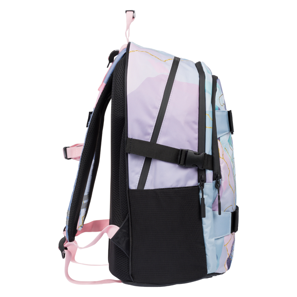 • Na prednej komore batoha sú umiestnené dva popruhy na prichytenie skateboardu.