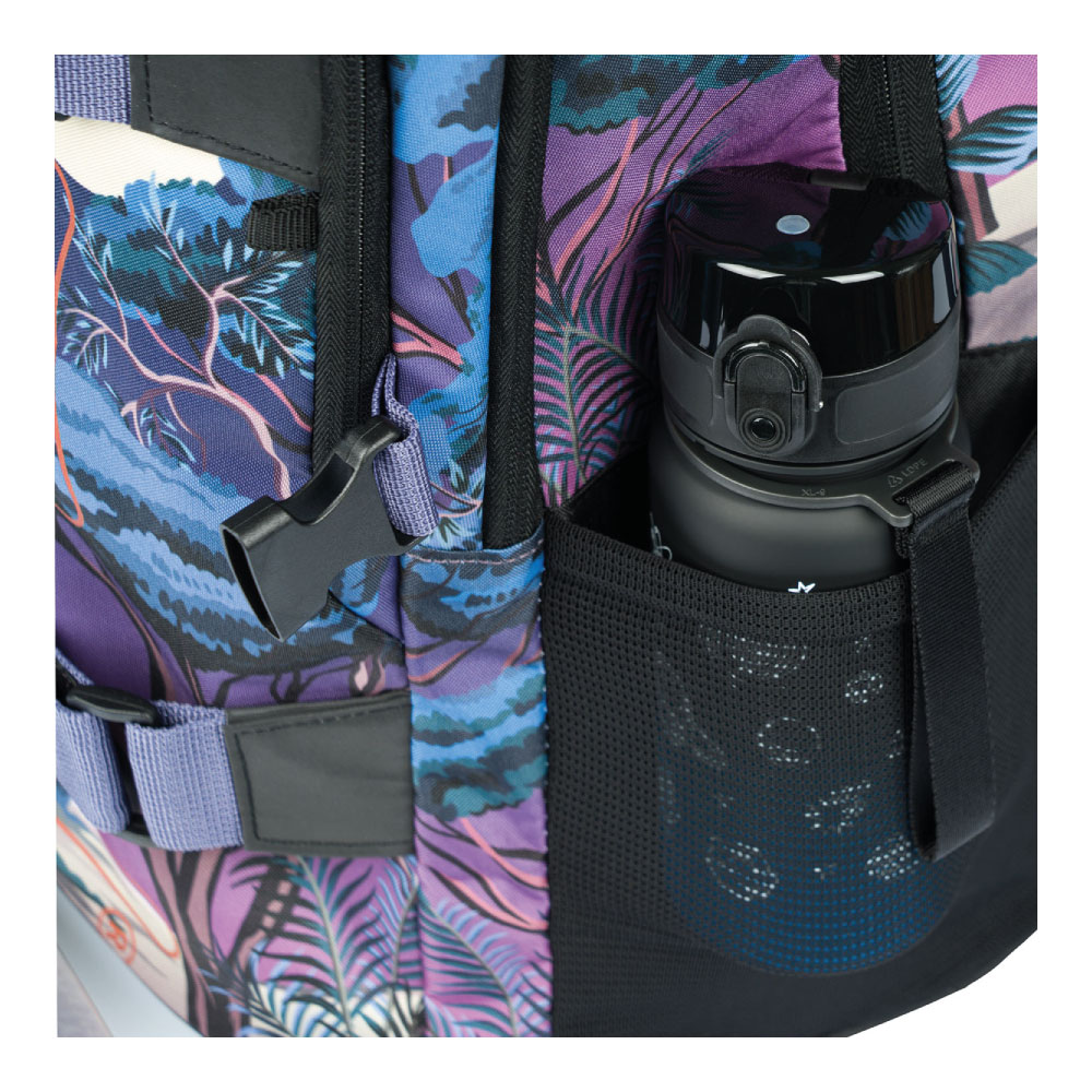 • Bočné vrecká z pevnej sieťoviny, ktoré sú vhodné pre jednu z našich fliaš na pitie.