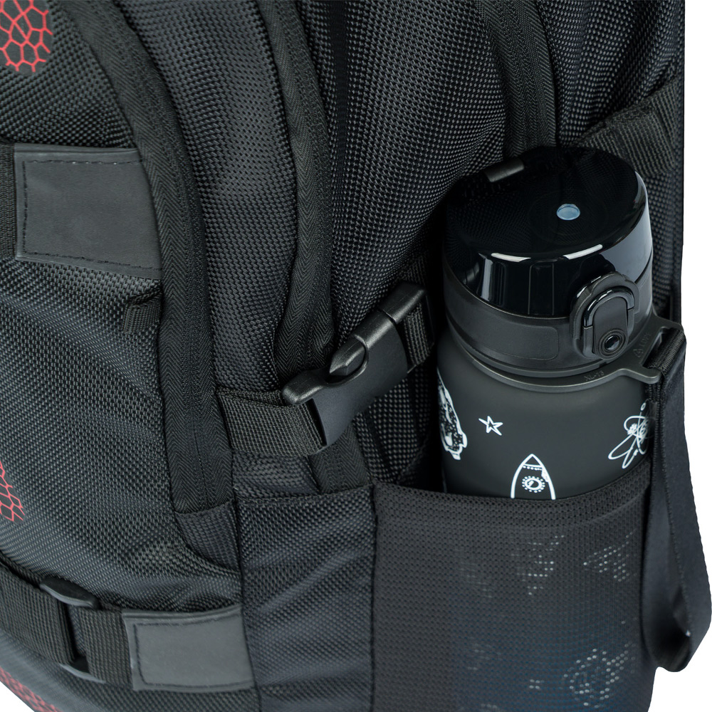 • Bočné vrecká z pevnej sieťoviny, ktoré sú vhodné pre jednu z našich fliaš na pitie.