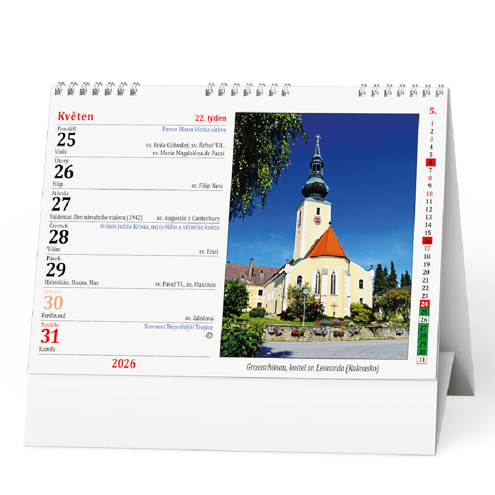 Stolový kalendár 2026 Katolícky kalendár /kostoly a kaplnky/