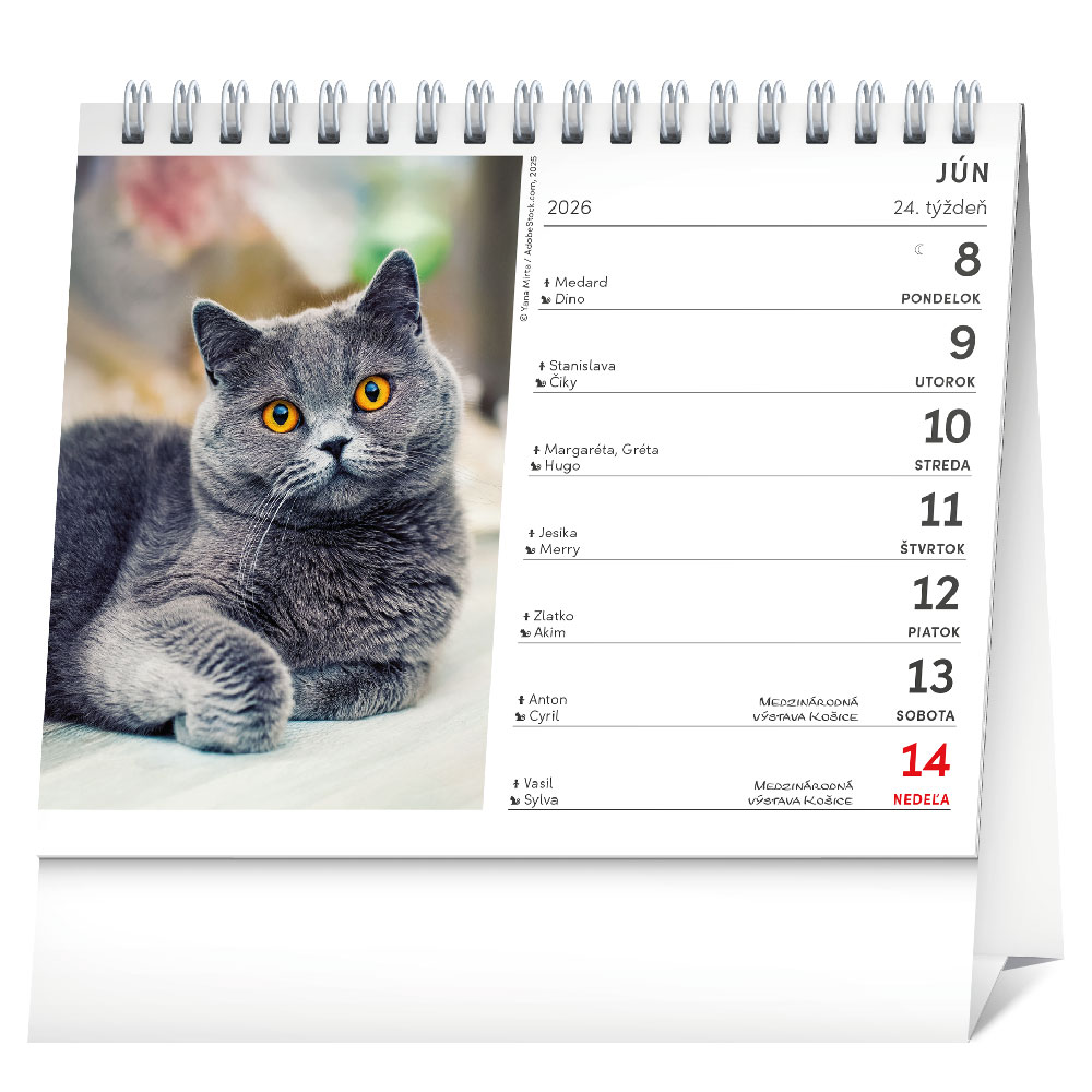 Stolový kalendár 2026 Mačky - s menami mačiek