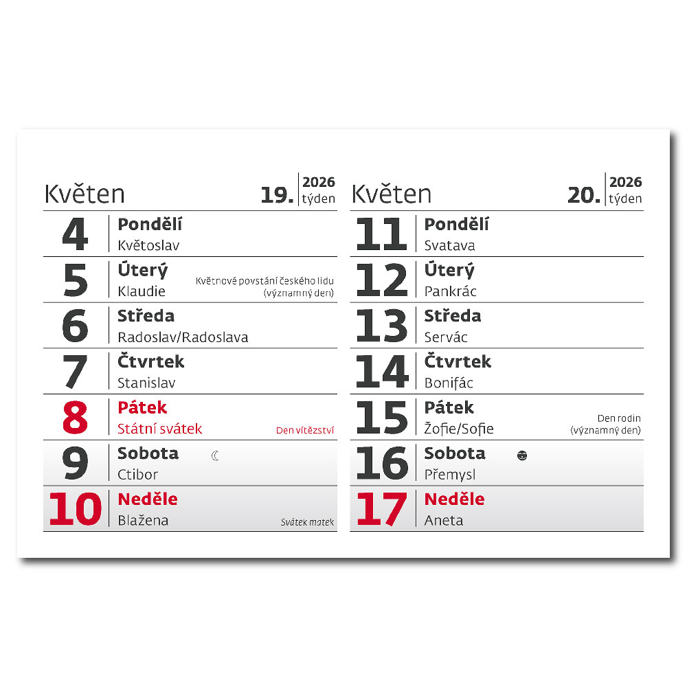Stolový kalendár 2026 - MINI 14-dňový kalendár